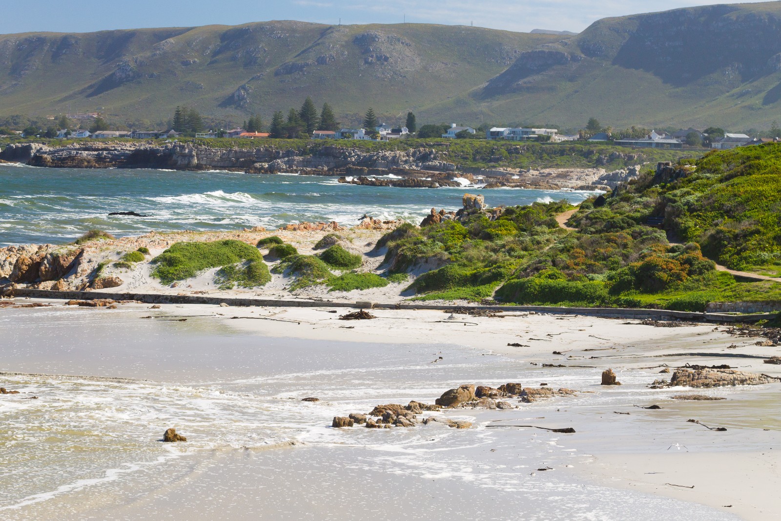Located on the the southeast coast of South Africa, Hermanus is well-known as a whale watching destination. There are some great beaches here, including Voëlklip Beach which is known for its fine white sand and secluded setting. It's also a popular place for surfing.