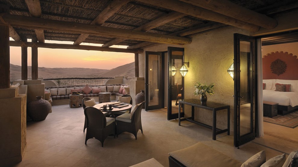 The Royal Pavilion Villas are also on a full board basis, and in addition to three meals per day, include soft drinks from the mini bar and two complimentary activities per day from a choice of: sunset or sunrise desert walks, dune driving, camel trekking, archery, sand boarding, fat biking and falcon shows.
