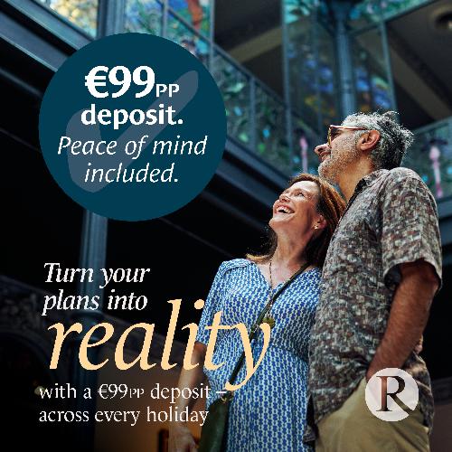 Riviera Travel have lowered our booking deposits to only €99pp! Yes, €99pp… For holidays departing in 2026, 2027 or 2028! This low deposit will lock in the FULL PACKAGE including flights and will run until 27 May.