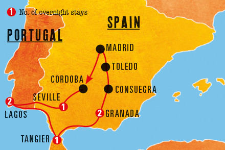 We spend 7 days exploring Spain, Portugal and Morocco. We visit Madrid, Lagos, Tarifa, Tangier, Granada, Ronda, Consuegra, Toledo, Seville, Cordoba.
